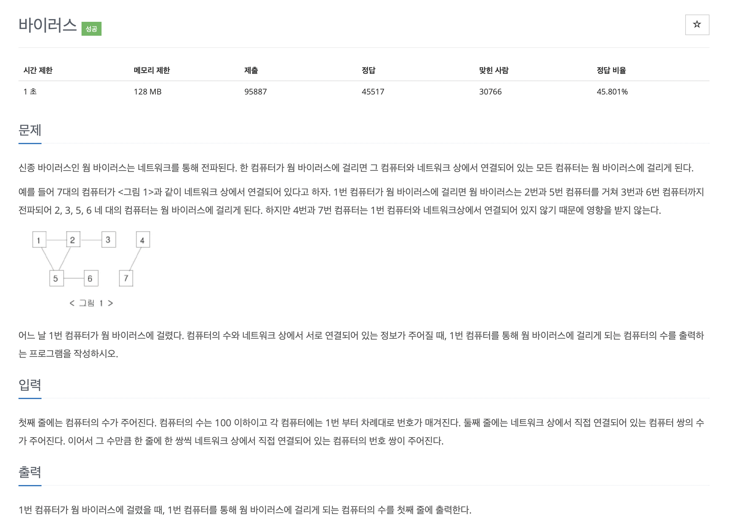그래프가 주어질 때 0번 노드와 몇개의 서로 다른 노드가 연결되어 있는지 반환하는 문제이다. 쉬움