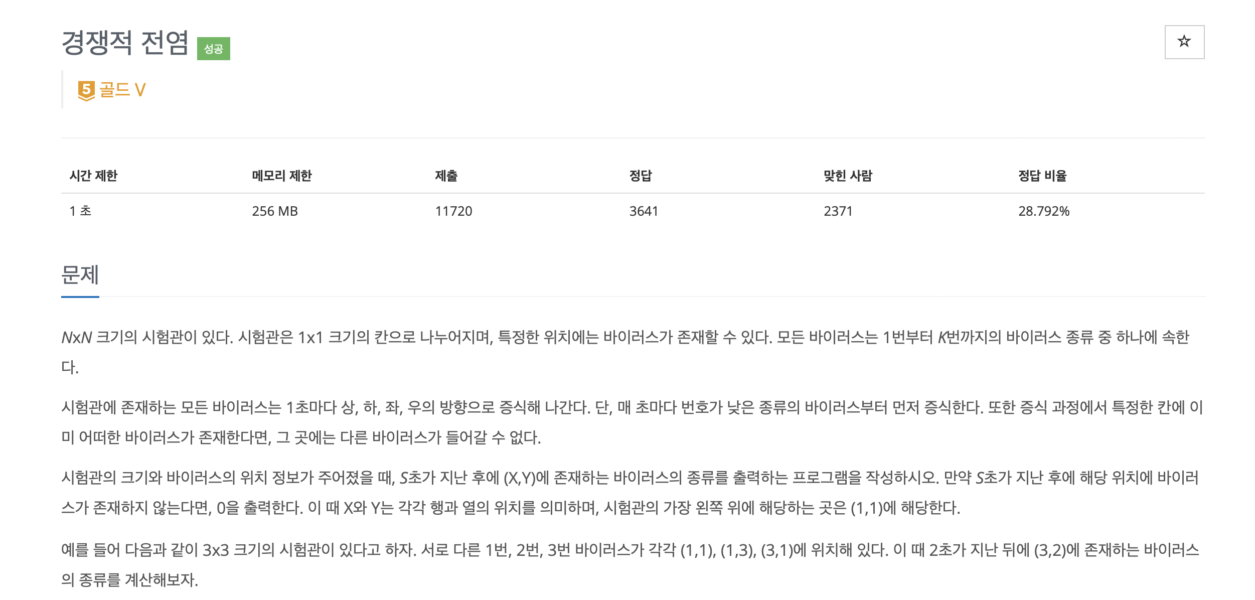 // S초 후에 (X, Y) 좌표에 있는 바이러스 종류