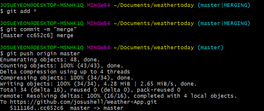 그래서 git status 로 modified 확인한 다음에 add 후 commit을 했다