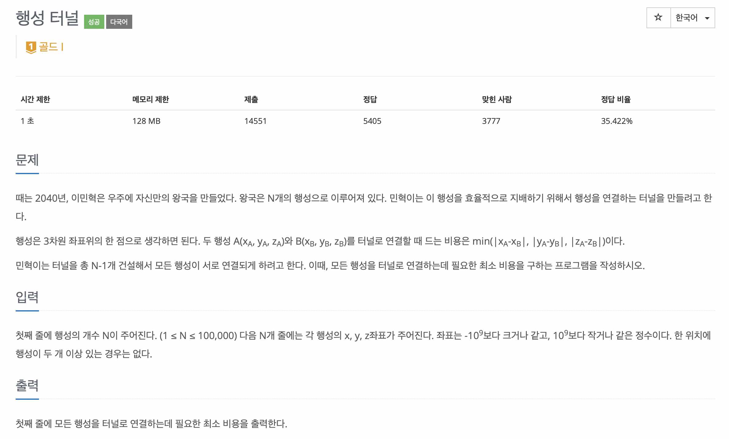 여기서 중요한 점은 간선 정보를 입력받은 후, 간선의 비용은 직접 abs와 min으로 직접 구해야한다는 것이다.