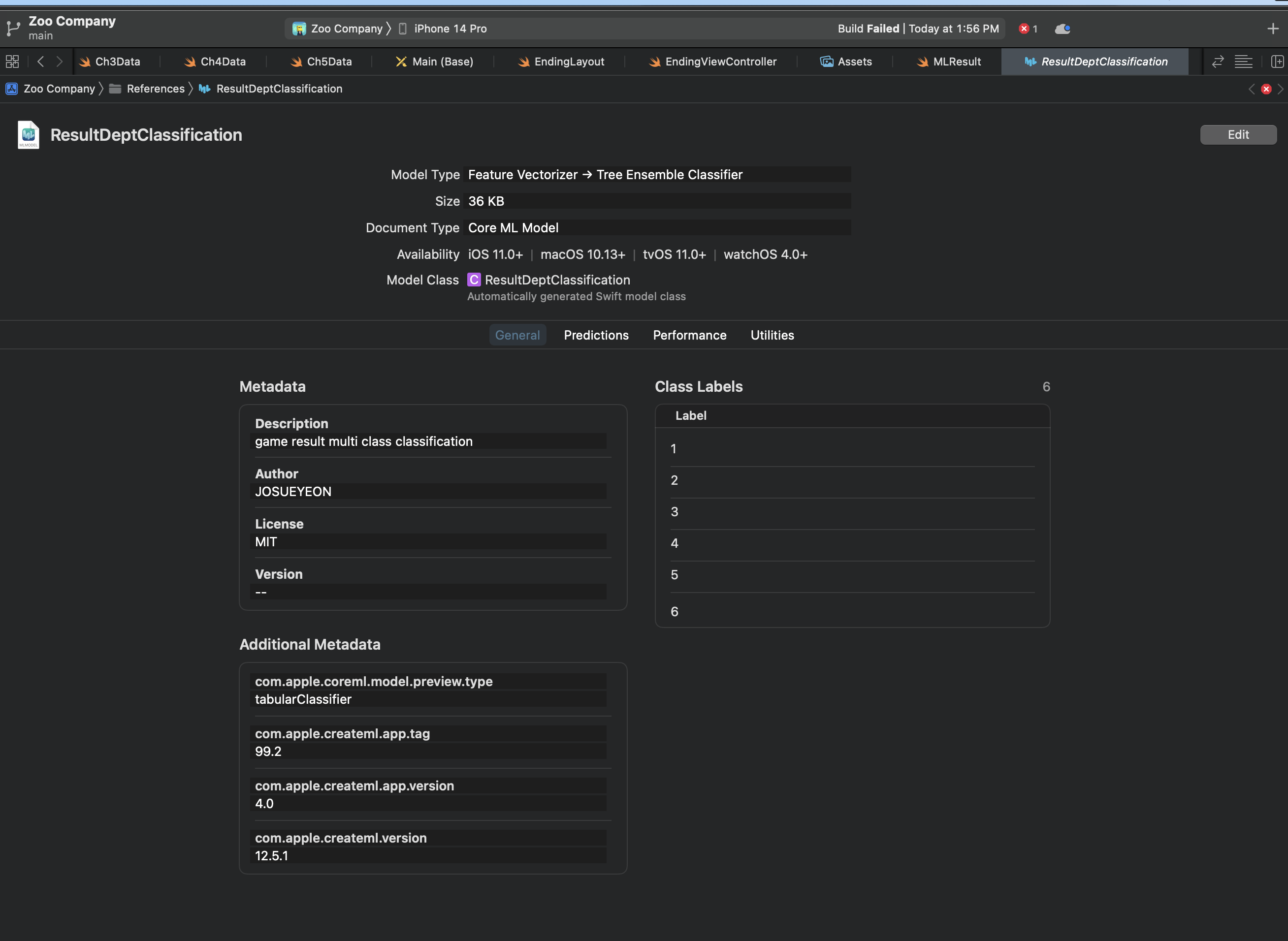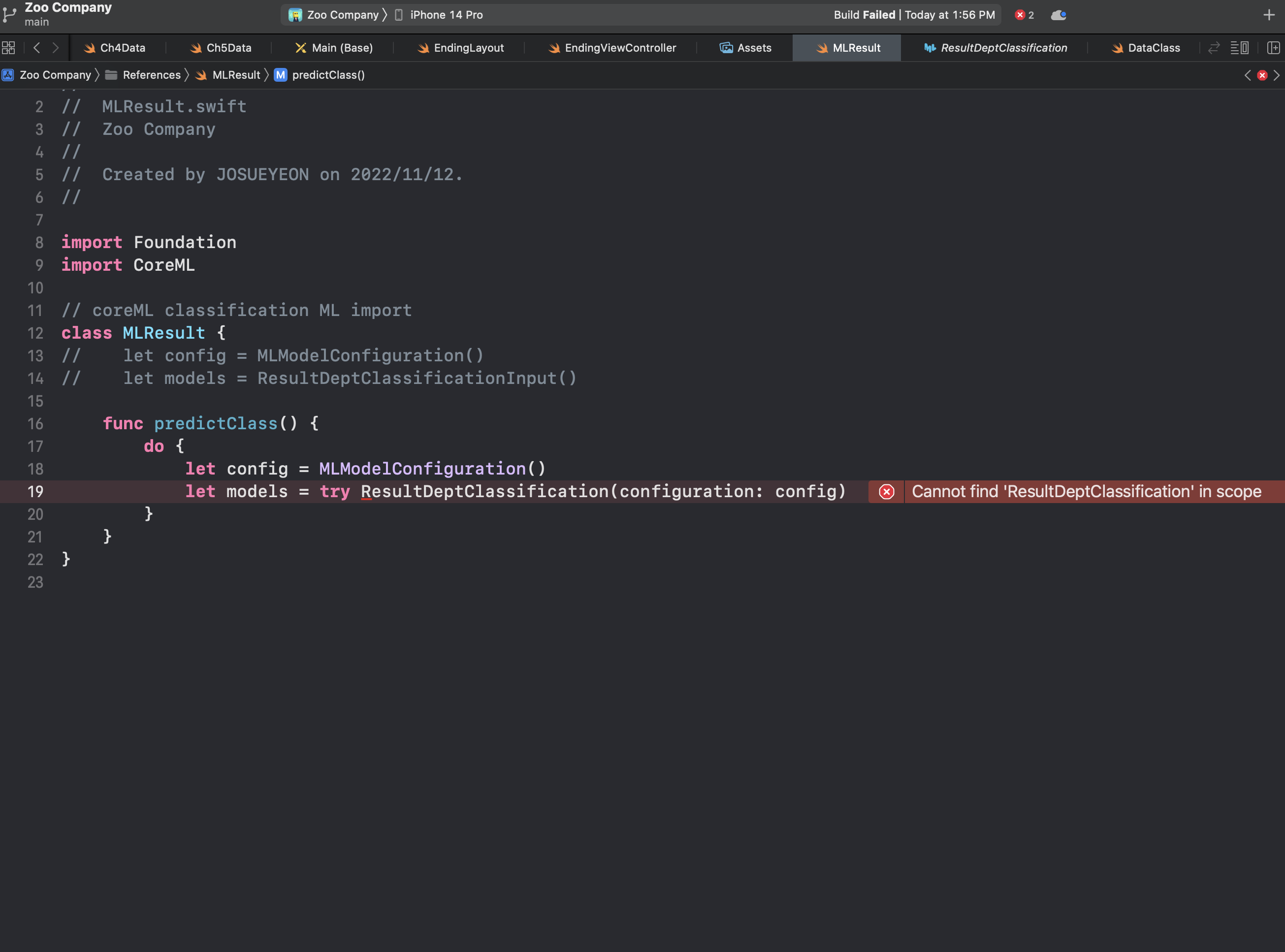 문제는 Xcode에서 model 인식을 못하는 것이였다...