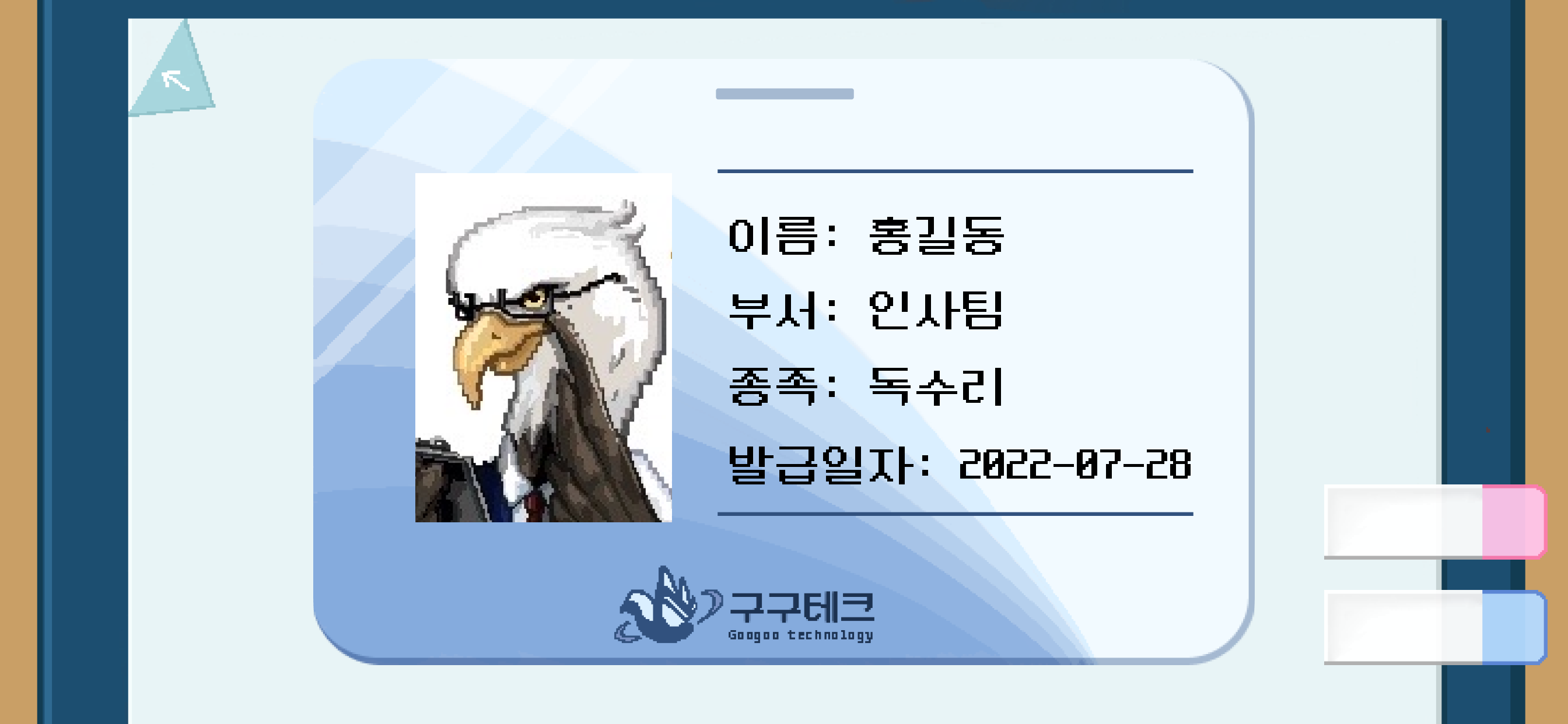 게임을 플레이하고 머신 러닝을 바탕으로 추천된 부서를 알아보고 구구 테크의 사원증까지 받아보자!