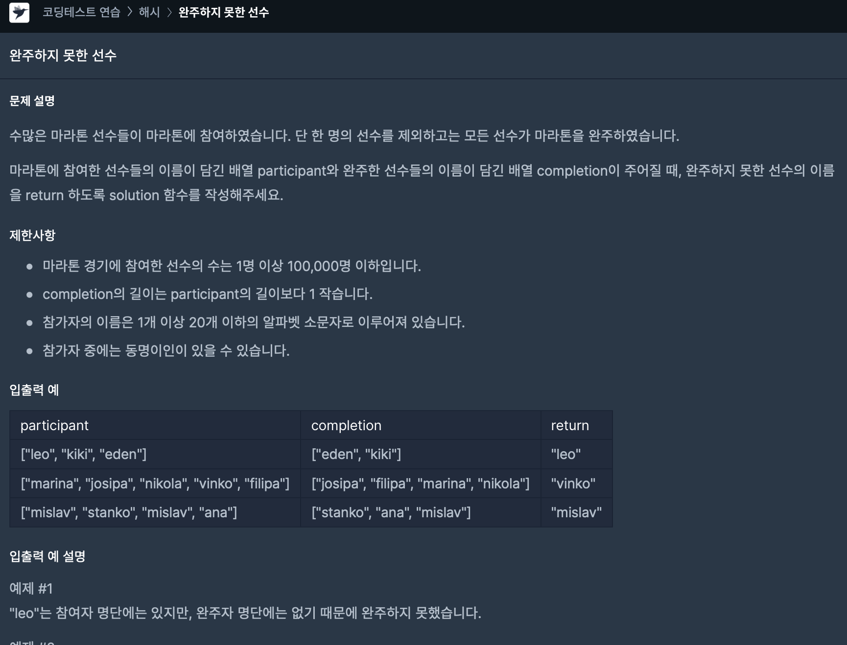 42576 완주하지 못한 선수 [문제 바로가기]