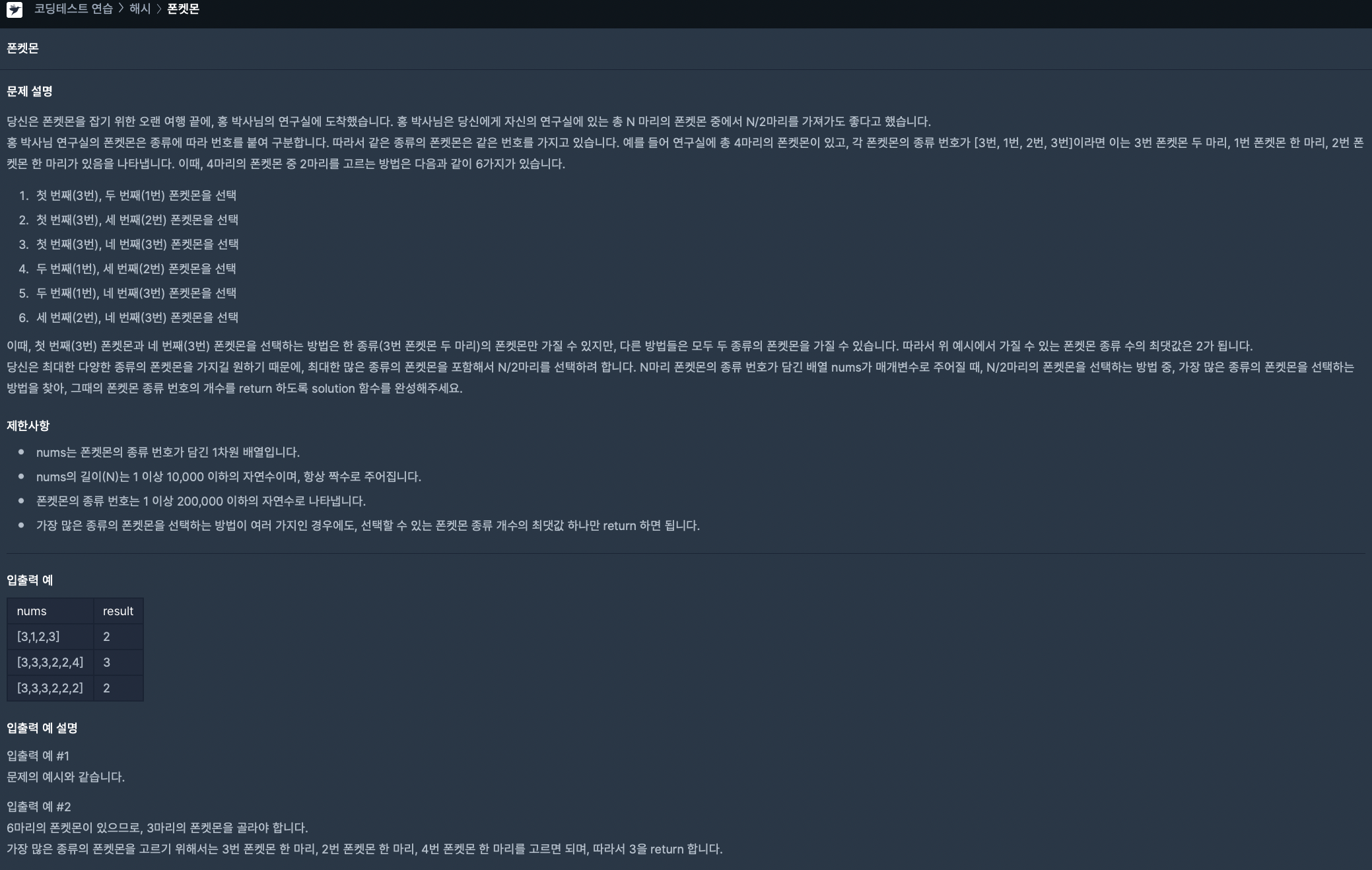 1. nums 배열을 돌면서 nums[i] 포켓몬의 번호에 해당하는 배열의 값을 + 1 해준다.