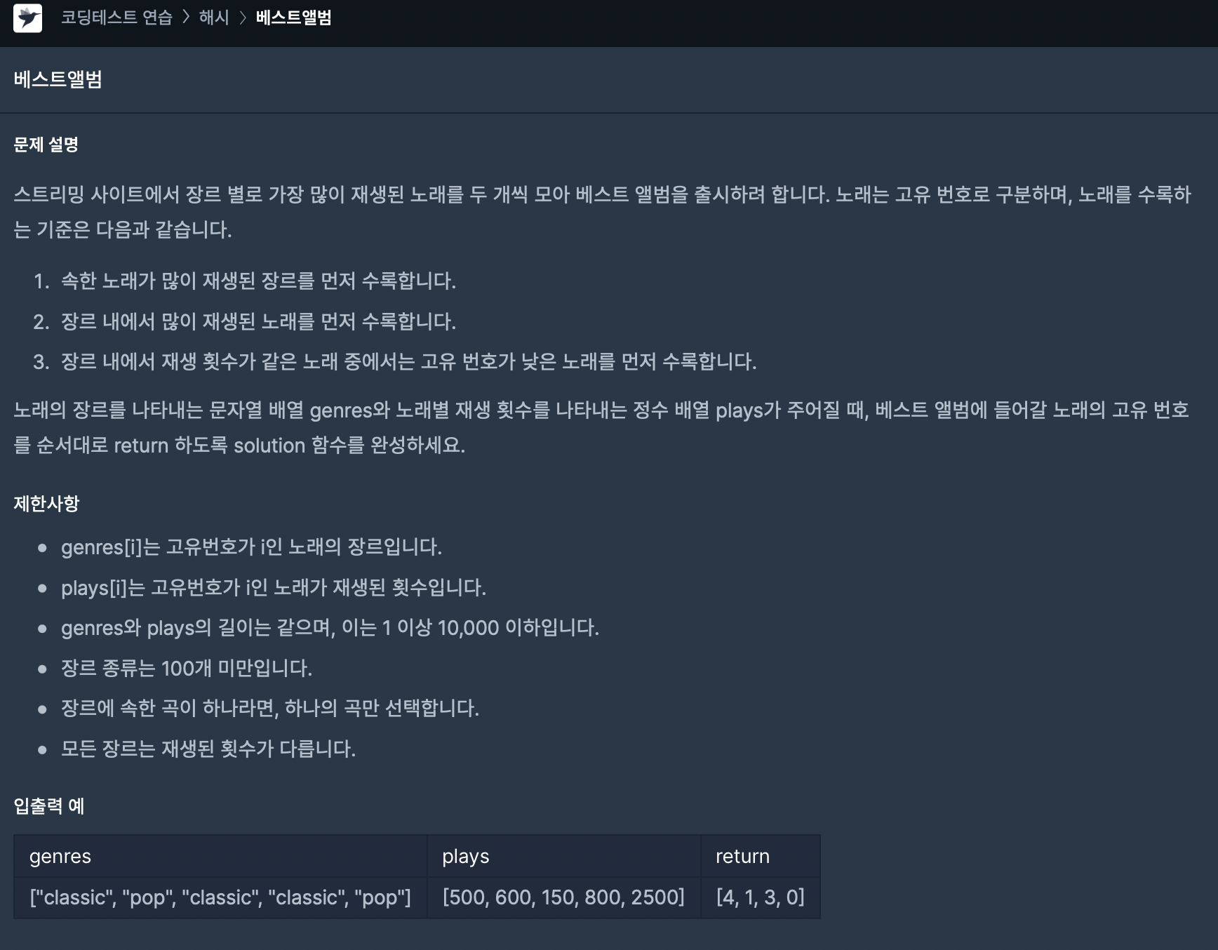 42579 베스트 앨범 [문제 바로가기]