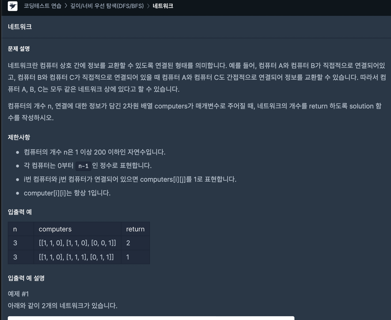 1. computers 배열을 돌면서 방문하지 않은 노드에 대해서