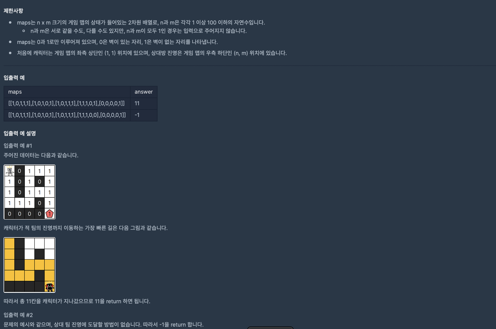 BFS를 사용하여 (0, 0) 에서 (n, m) 까지 블럭 수를 +1 해서 탐색한다.