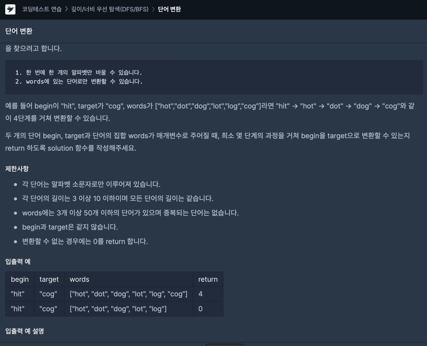 1. begin 단어를 queue에 넣고 BFS를 진행한다.
