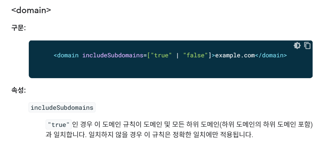 이렇게 특정 도메인을 res/xml/network_security_config.xml 에 추가하고 <network-security-config> 태그 안에 <domain-config cleartextTrafficPermitted="true or false"> 이 속성을 추가해주면