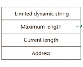 2. limited dynamic string: compile time에 최대 길이를 정하고 run time에는 자유롭게 바꾸기 가능하다. -> C/C++은 여기다.