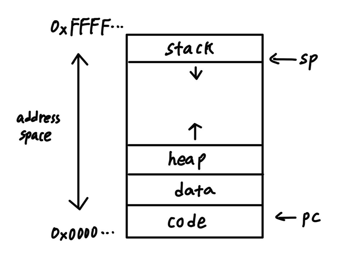 보통 리눅스에서는 프로세스에게 4GB의 가상공간을 할당하고 0~3GB 는 사용자 공간, 나머지 3~4GB는 커널 공간으로 할당한다. 이때 사용자 공간이란 code, data ~ stack 까지의 영역을 말한다.