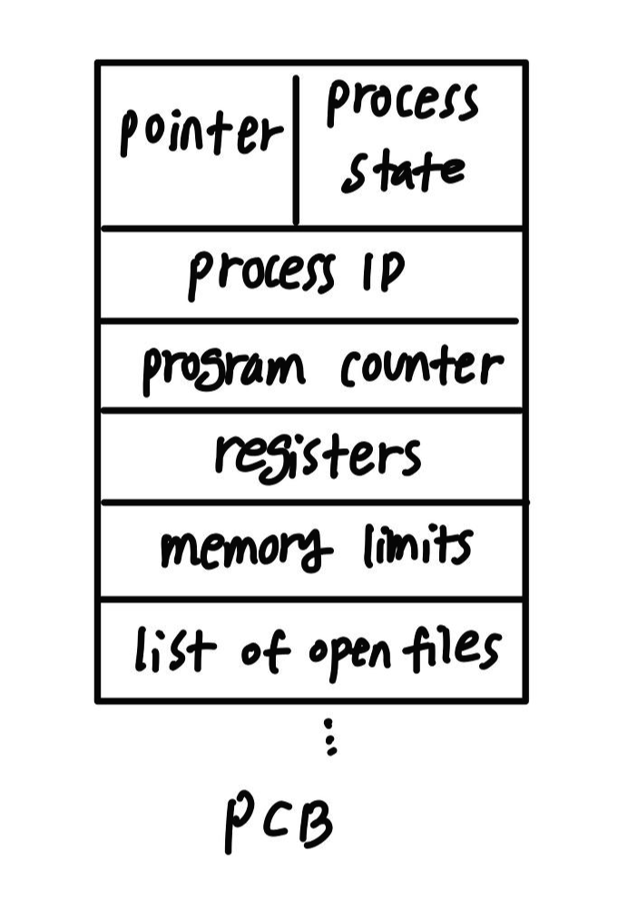 - cpu scheduling information; 어떤 명령어부터 실행할지에 대한 정보도 저장한다.
