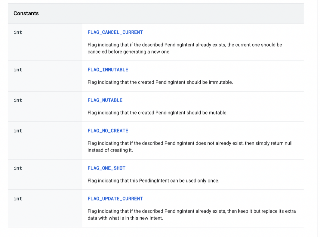 구글 공식 개발자 문서에 flag에 대한 설명이 자세하게 나와있다. 원하는거 갖다 쓰면 됨