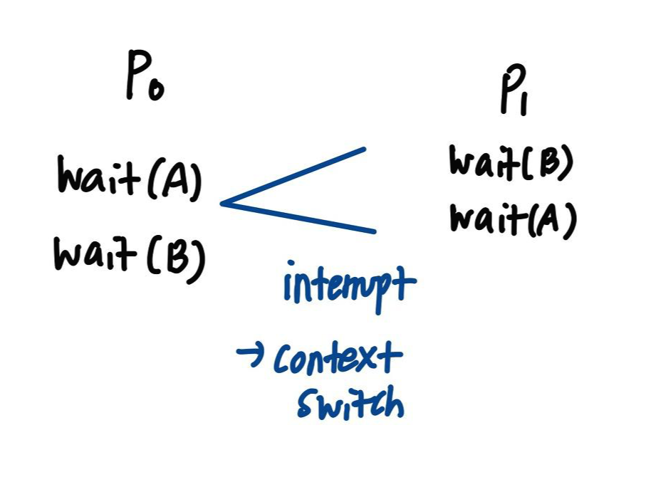 semaphore A와 B를 기다리는 프로세스 두개를 생각해보자