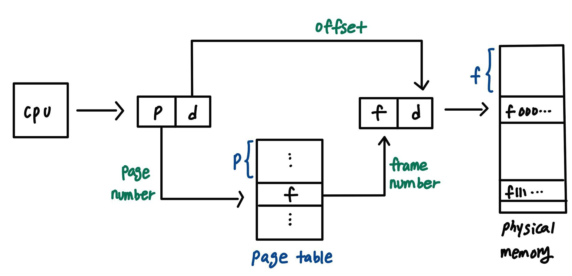 : physical address space에 프로세스를 page 단위로 불연속적으로 저장하여 external fragmentation 문제 해결