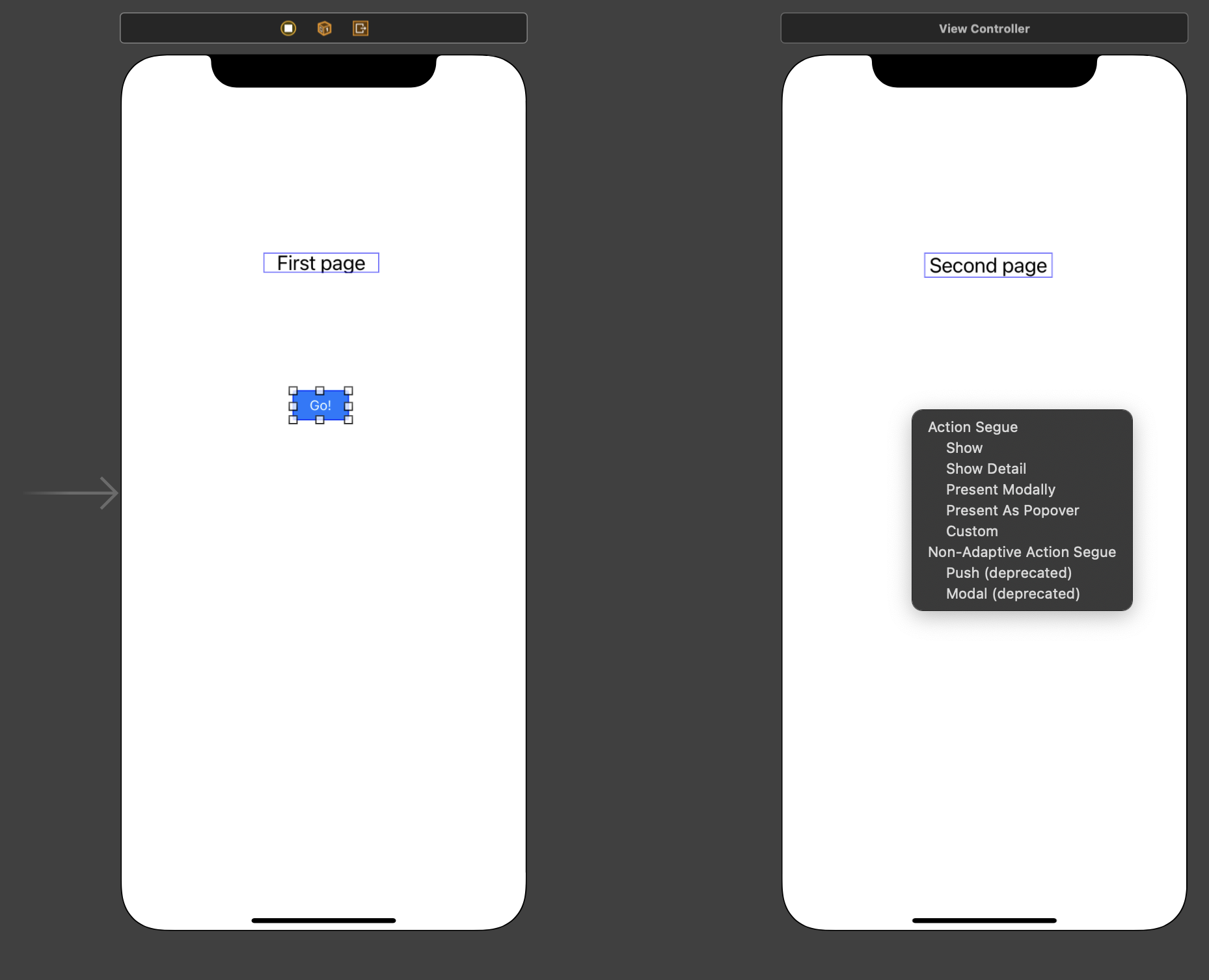 2. 액션 세그웨이 (Action Segue or Trigger Segue)