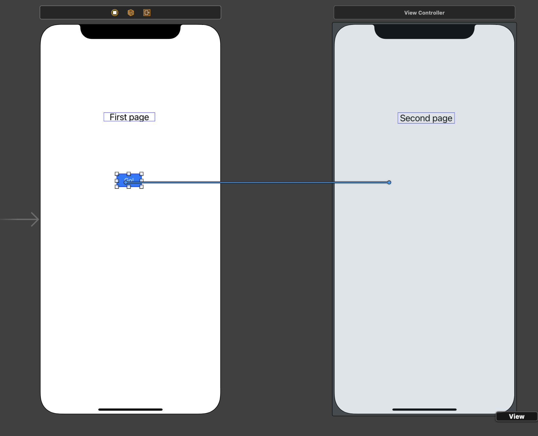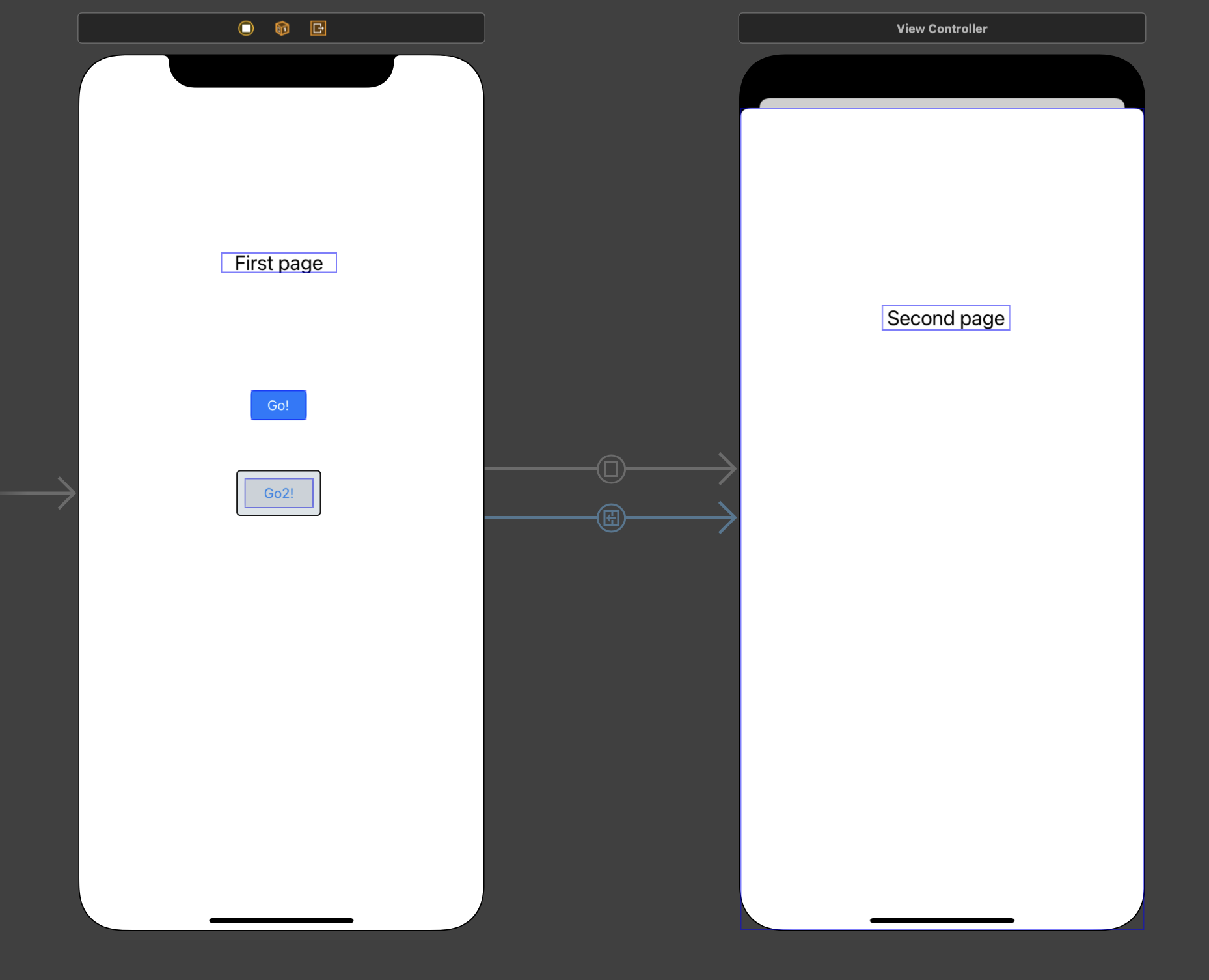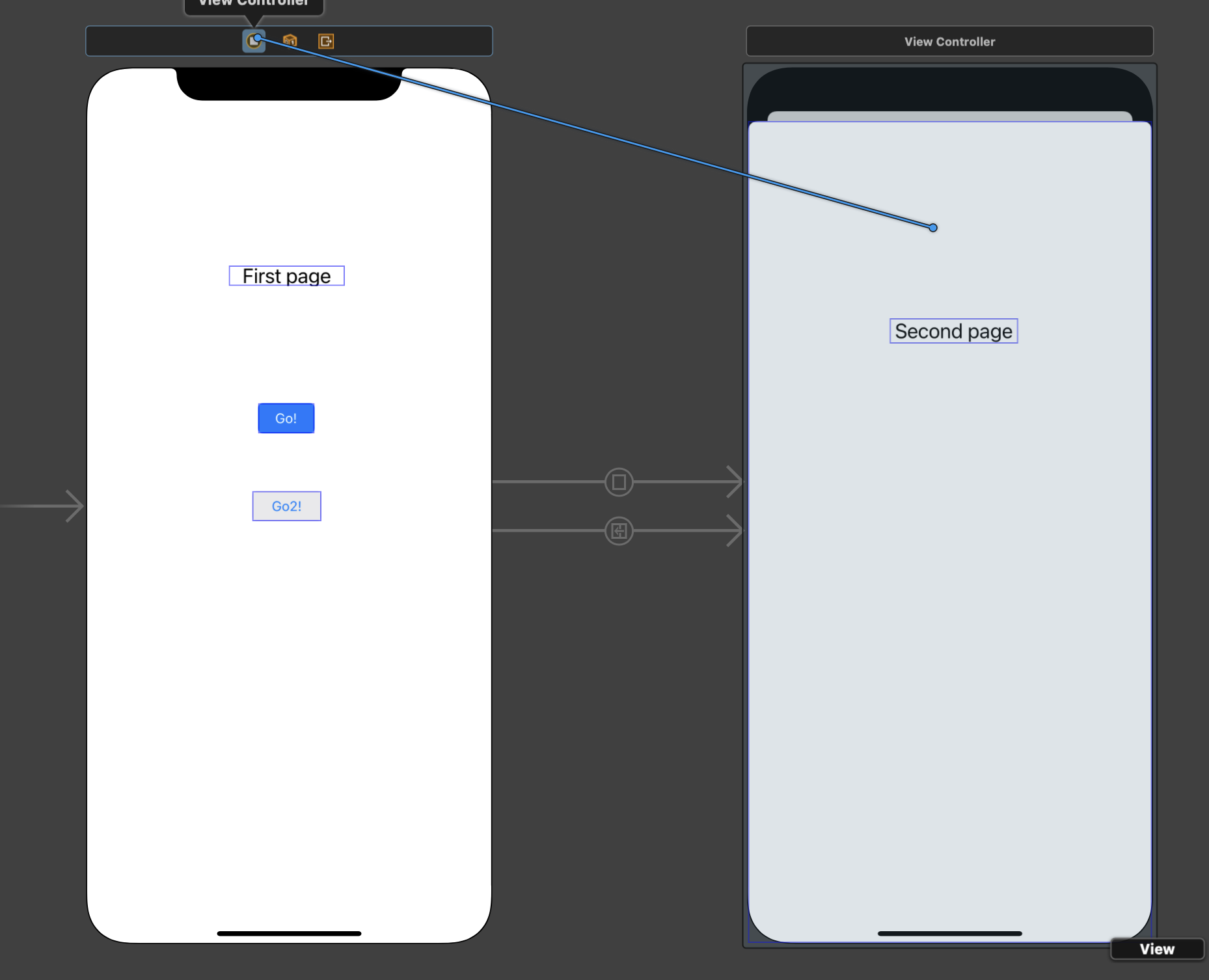 segue를 설정하고 나면 다음과 같이 segue 객체가 뷰 컨트롤러 사이에 생성된다.