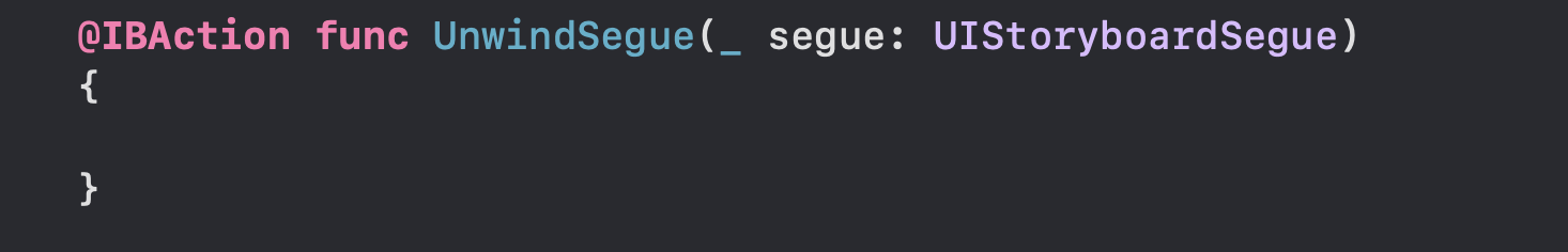 앞서 이전 화면으로 돌아가기 위한 메소드를 unwind method라고 한다고 설명했다.