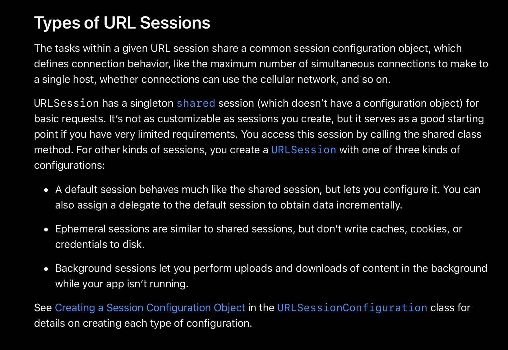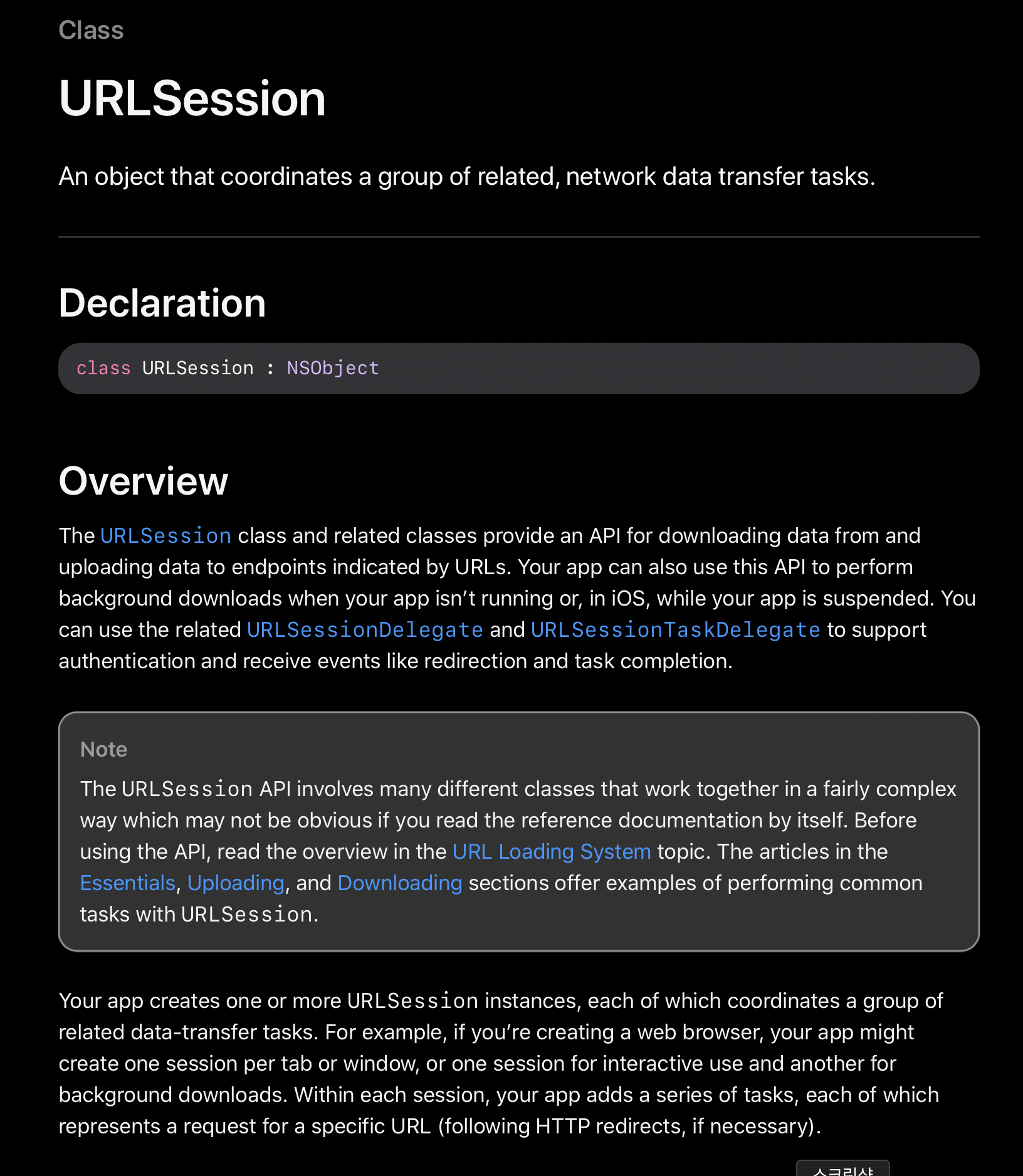 URLSession 객체는 singleton 패턴이므로 shared 속성을 통해 참조 가능하다.