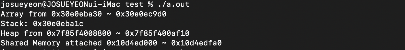 shared memory 를 생성하고 메모리 주소를 출력해보자.