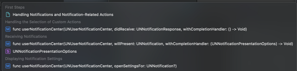 이러한 UNUserNotificationCenterDelegate의 메소드들을 살펴보자