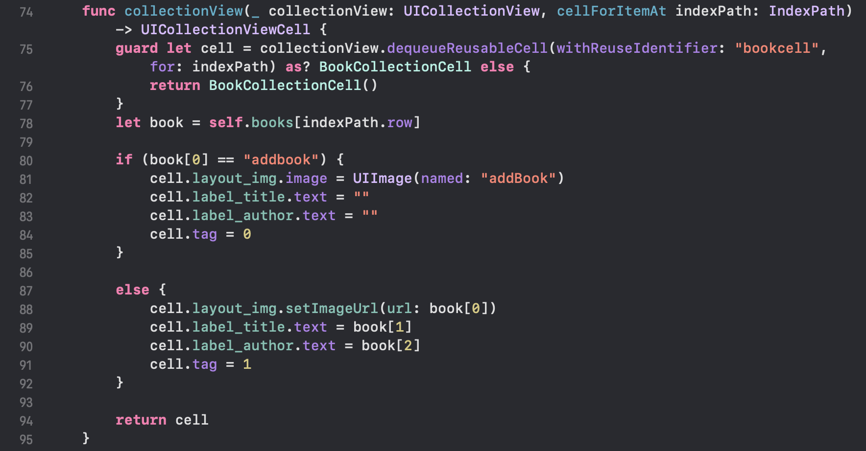 다음과 같이 cellForItemAt() 안에서 cell을 반환할 때 dequeueReusableCell 에서 구별자로 cell을 가져오는 것을 볼 수 있다.